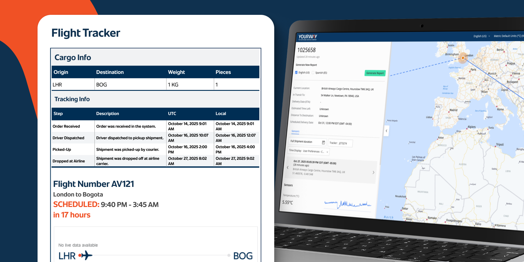 Shipment management Our easy-to-use customer portal allows our clients to manage the movement of their goods throughout the supply chain, view where in the shipping process their product is at any time, and access scheduled transport details such as flight information. This transparency supports timely delivery and enables our clients to plan more accurately in accordance with arrival times. | |